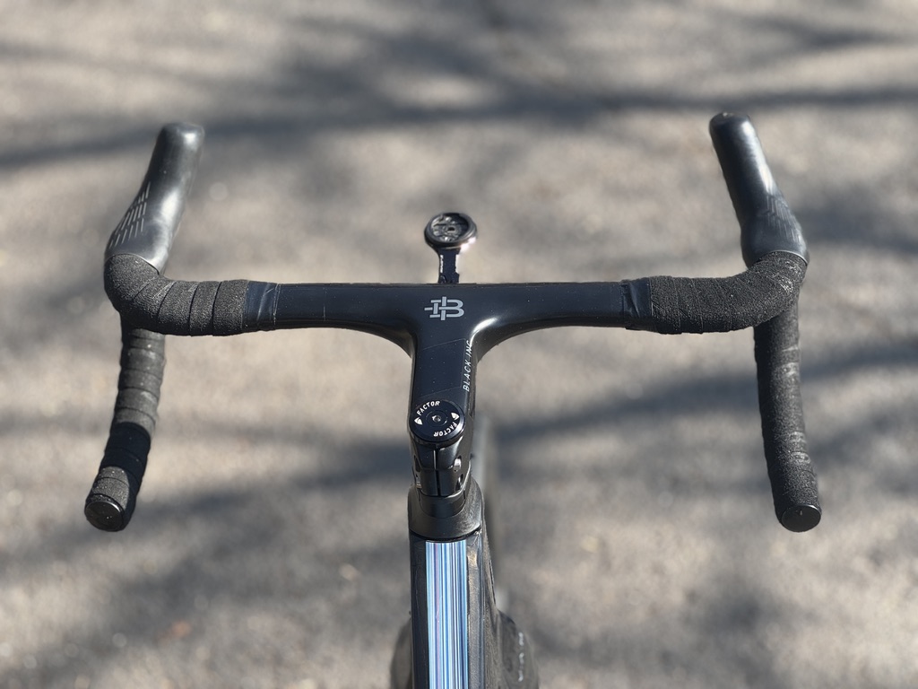 Kormány/kormányszár: Black Inc integrált karbon, Garmin-tartóval