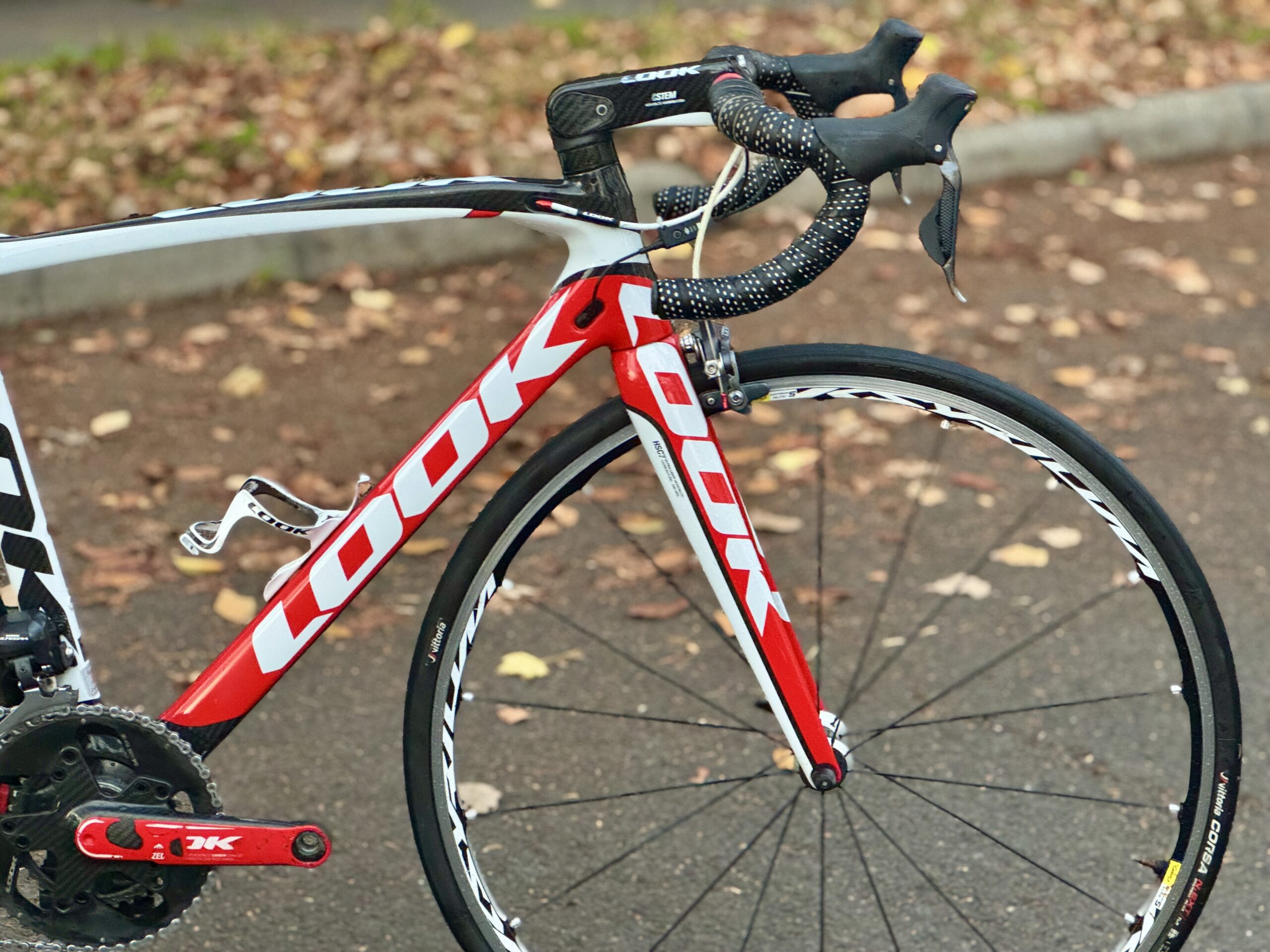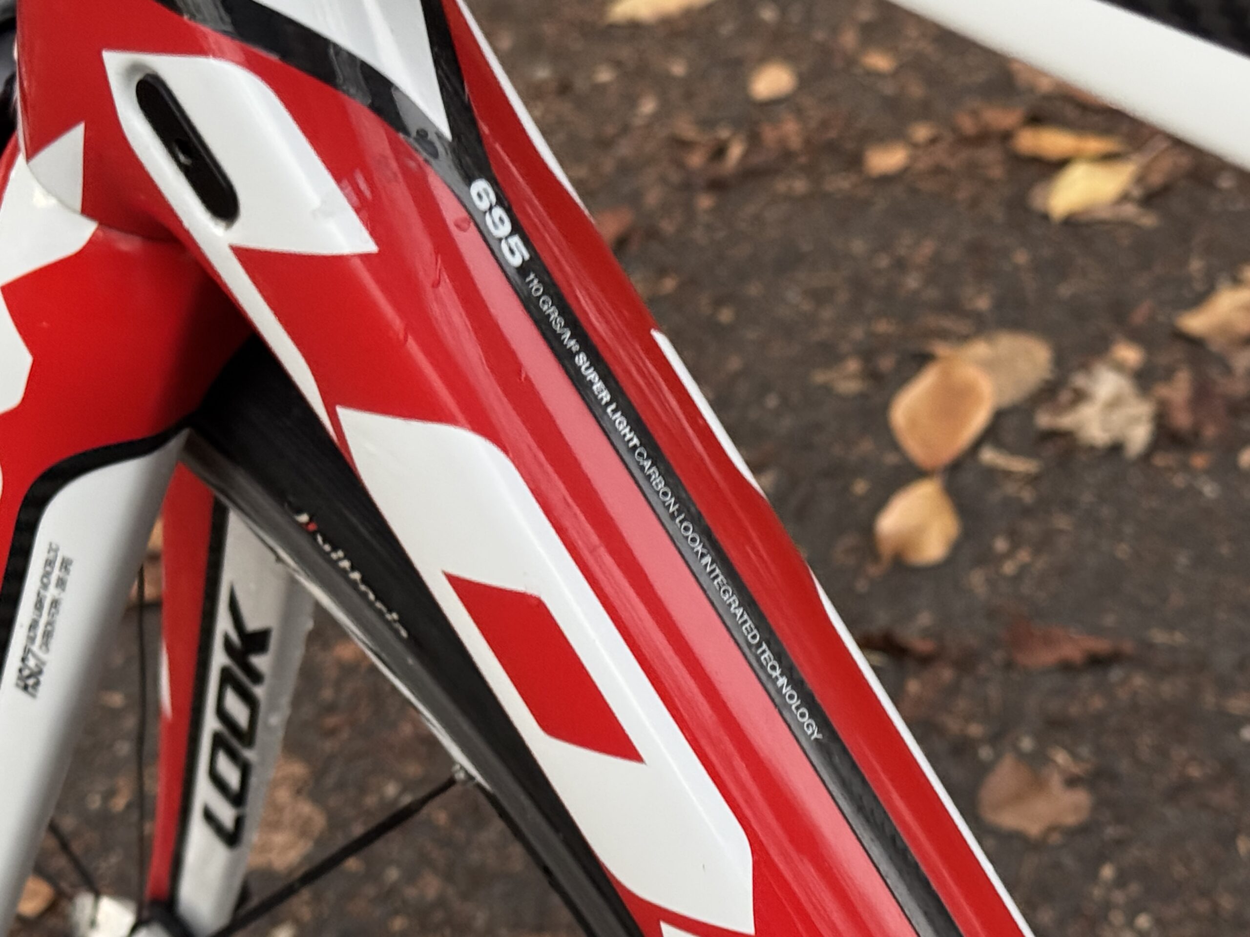 Eladó egy könnyű, 7,18kg-os Look 695 Carbon országúti kerékpár az alábbi felszereltséggel: